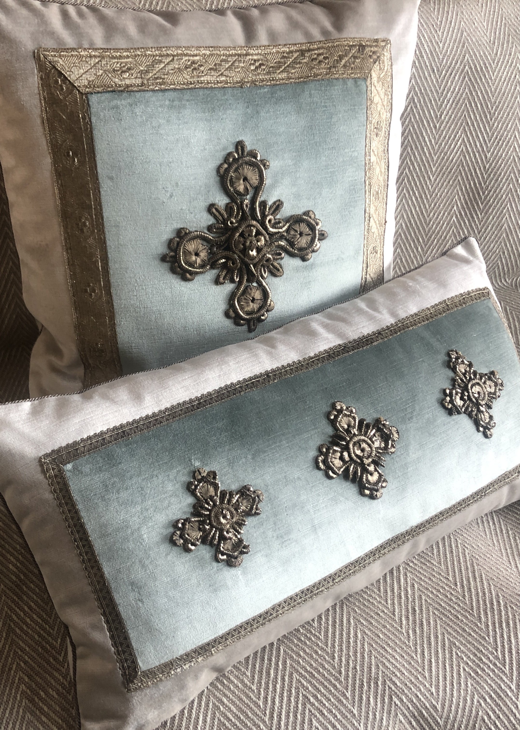 Ecclesiastical embroidery, antique French textile pillows